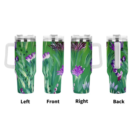 Unique 40oz Stainless Steel Tumbler With White Handle and Straw